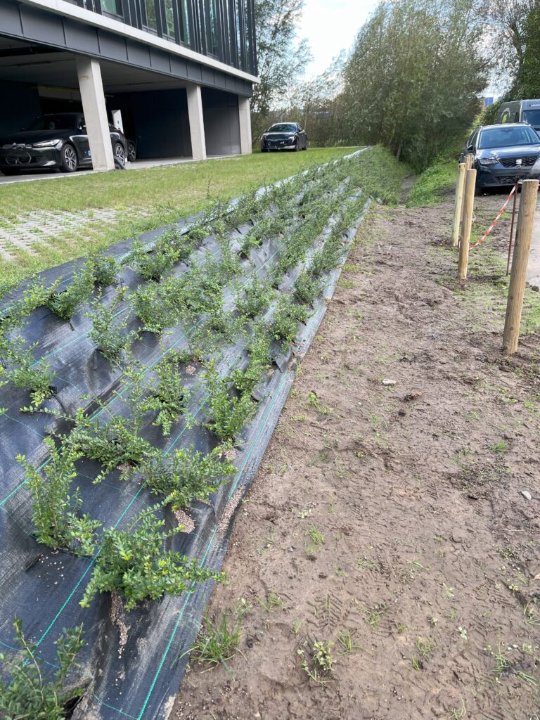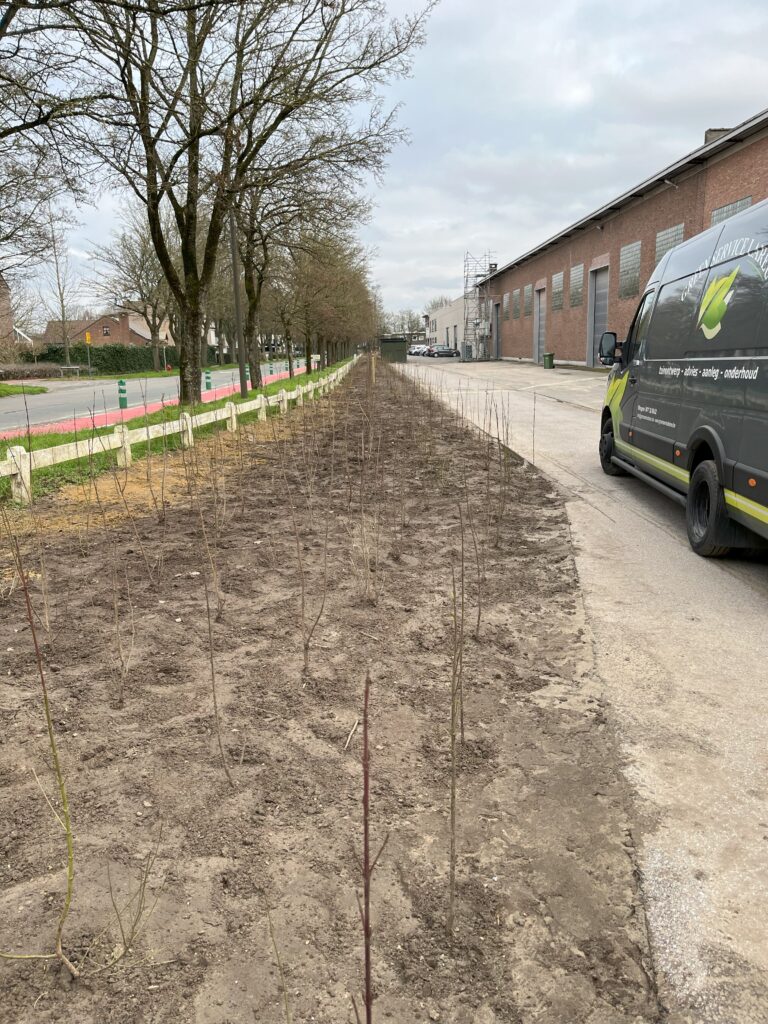 Aanplanten van groenscherm en leggen van hakseling te Mechelen